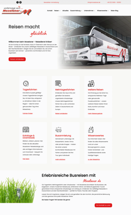 Der Moselaner, geführt von der Familie Kröber aus Winningen an der Mosel, ist ein renommiertes Busreiseunternehmen mit einer über 70-jährigen Tradition. Gegründet 1953, hat sich das Unternehmen von Mietwagenfahrten zu einem vielseitigen Anbieter von Tages-, Mehrtages- und Spezialreisen entwickelt. Das Angebot reicht von Konzert- und Musicalreisen über Städtereisen bis hin zu Wellness- und Wanderurlauben. Unter der Leitung von Timo Kröber und unterstützt von Simone Kröber, bietet Der Moselaner heute hochwertige Reiseerlebnisse für verschiedene Zielgruppen, unterstützt von einem erfahrenen und engagierten Team.